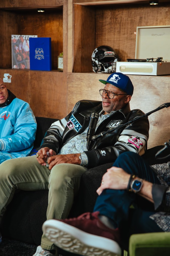 Carl Banks: This year we are bringing to life Starter Lab, an in-store customization experience that allows guests to step into the role of designer. Visitors can create one-of-one Starter products by selecting their favorite Starter pieces and customizing them, an experience exclusive to our Starter NFL Pop Up during Super Bowl week. We also have an exclusive collection with Avirex, which is peak nostalgia. Returning after a successful debut at Super Bowl LIX in New Orleans, Starter Live is our live, in-store podcast studio, which is a really cool experience for fans to see some favorite podcasts live. We’re hosting conversations, interviews, and real-time content with friends and collaborators of the brand. This year’s lineup includes Jim Weiss, Pacman Jones, TJ Ward and more. I can’t wait to see how fans interact with the pieces and the experiences we have created.