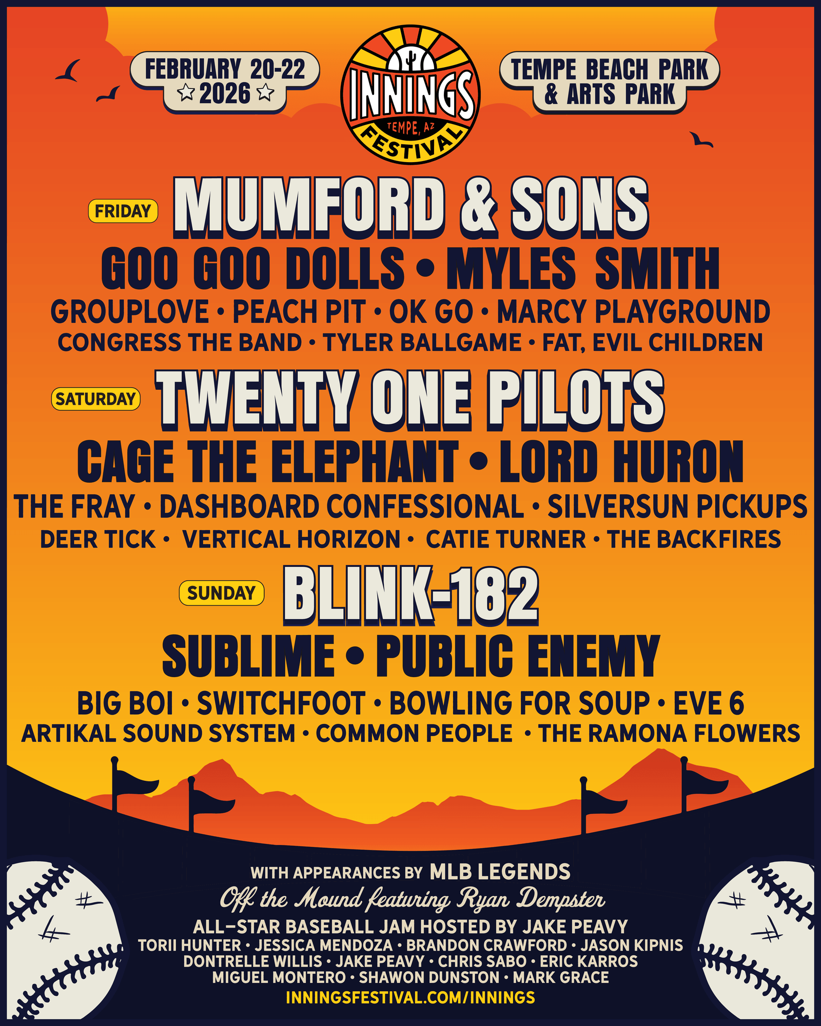 Get ready! Innings Festival at Tempe Beach Park is FOUR DAYS AWAY! The beloved festival makes its grand return for its eighth year and will be bringing more heat than ever. February 20-22nd, attendees will get a taste of live music with a side of baseball!