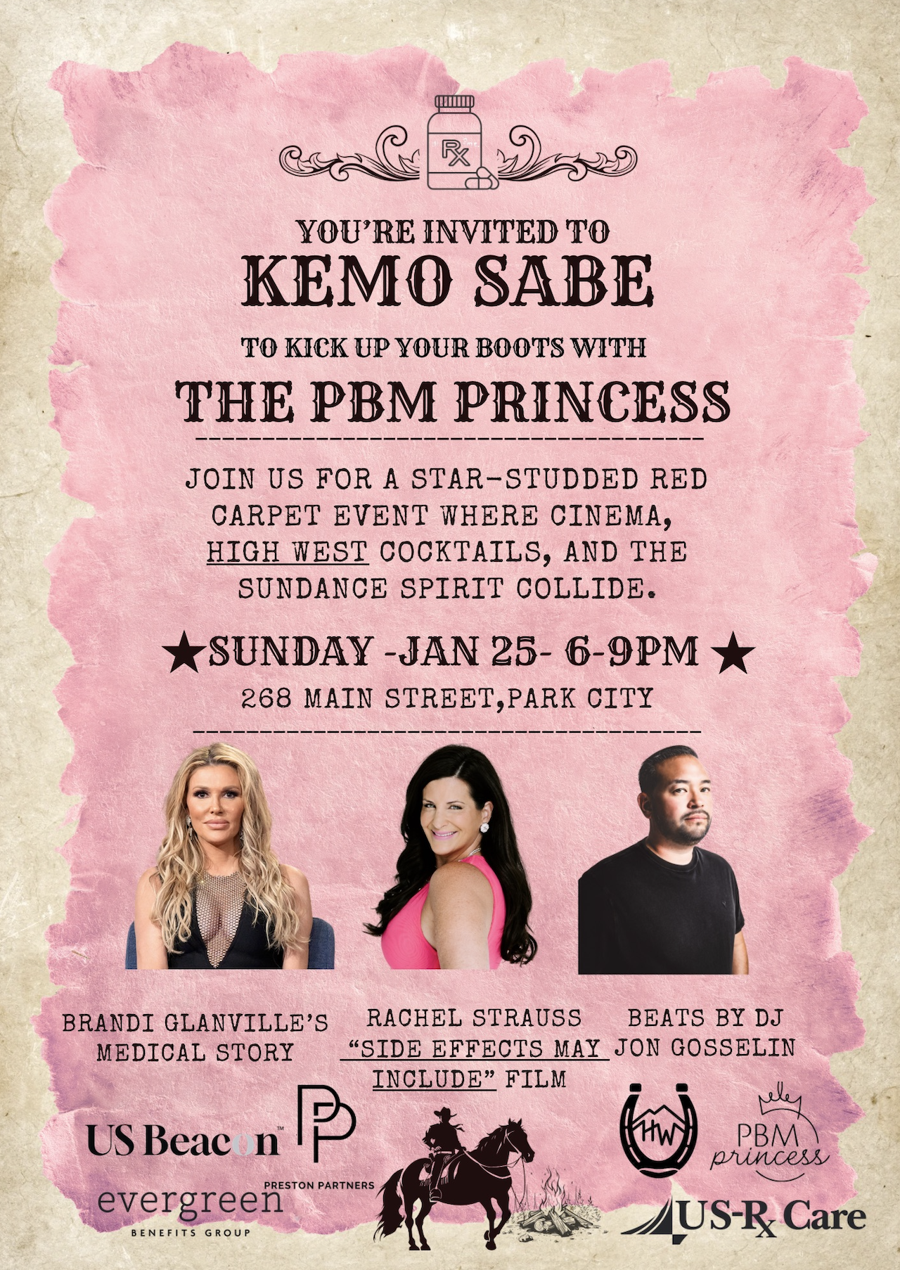 Special guests heading to Park City have the option Kemo Sabe on Main Street, one of the Sundance Film Festival’s hidden gems, for an exclusive red carpet reception honoring The PBM Princess, Rachel Strauss, and a special screening of “Side Effects May Include: The Hidden Cost of Prescription Drugs.”