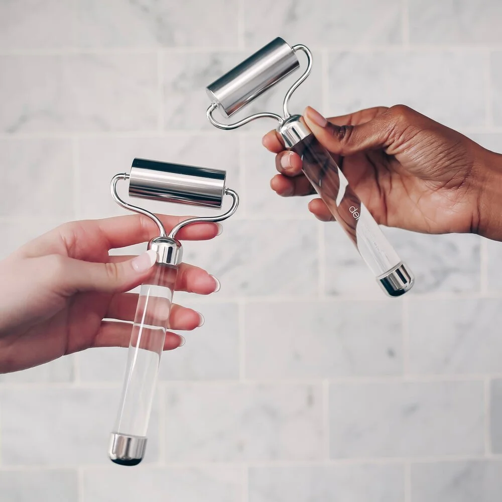 AGL: Ice Rollers are the best thing to happen to our skin! This type of cold tool, like our La Glace Skin Roller, has a chilled cylindrical drum that rolls seamlessly over the skin. Cryotherapy (ice therapy) for the skin works to calm inflammation, lock in moisturize, depuff the skin, heal acne and so much more. The best part? There is no wrong way to use it! The key is to roll over clean skin. You simply pull your roller out of the fridge and glide it along the skin, working in upward and outward motions. Bonus points if you roll over a cooling face mask! Keep rolling until your skin feels invigorated and chilled to the touch. A cooler temperature of the skin is a characteristic of healthy skin!